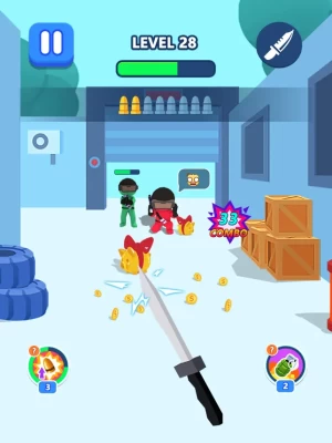Turn based shooting game. In the enemy's turn, players need to control the bullets fired by the small knife to ensure their own safety;