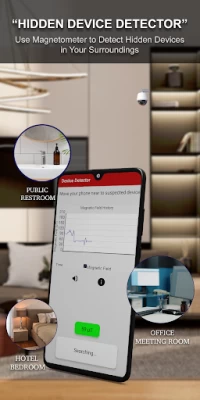 Electronic devices have magnetic field which our app measures by using magnetometer sensor to give you an idea about the presence of potential electronic devices in your surroundings. Rather than using manual listening device detector you can make use of this app to find potential spy devices.