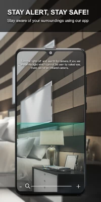This app uses an algorithm to detect hidden devices using magnetometer readings. When the magnetic field value is higher than usual, the app alerts user to search for potential hidden electronic devices in the surroundings.