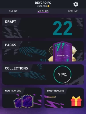 - Draft - Open unlimited number of packs with over 2000 players - ALL Icon, Inform & other special players are available! - Save your best packs. - All players are saved to "My Club" so you can see your collection! - Squad Builder! - Match simulation! - Transfer Market - Squad builder challenges (SBC) - Draft.