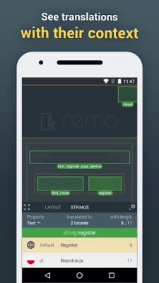 Developer Assistant gives translation offices possibility to display translation keys next to text elements, directly on a mobile device. Translators get what’s the most important in order to provide a quality translation: the context where a given text is used.
