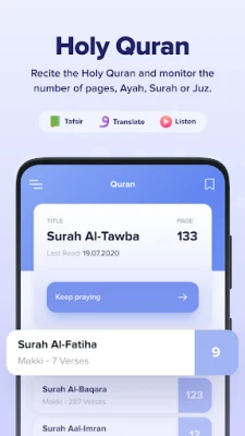 We've also introduced an interactive Quran recitation mode, which lets you listen to the Quran in a beautiful and immersive way. And with the new Quran last reading save feature, you can easily pick up where you left off, without having to search for your place in the Quran.