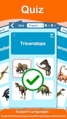 * Quick, Fun & Easy Ways to Learn Dinosaurs with Multiple Languages.