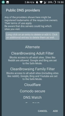 Это приложение создает VPN-соединение локально (данные не удаляются из вашего телефона с использованием этого VPN-соединения), чтобы использовать настроенные DNS-серверы как в беспроводных сетях, так и в мобильных сетях без необходимости получения прав root.