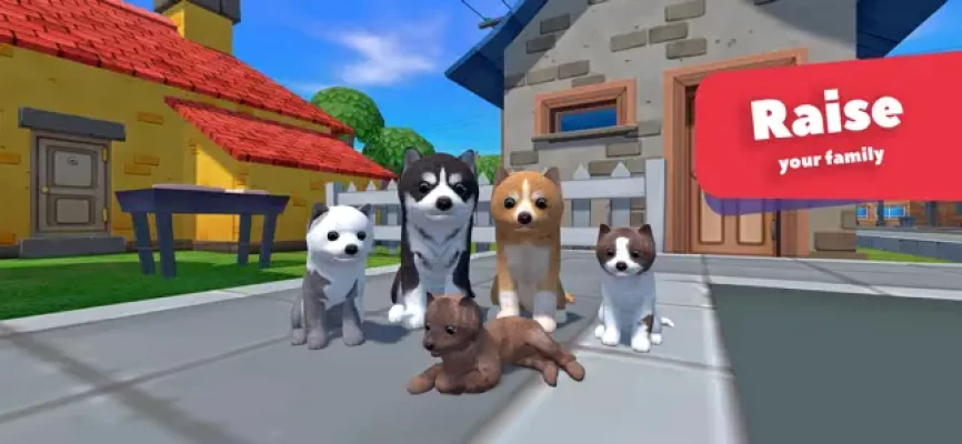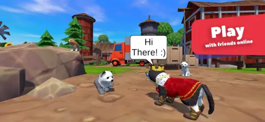 Our adventure 3D game allows you to choose a domestic animal of a desired breed, to play with friends and their cute pets online in real time thanks to the multiplayer mode, to be friends with them, to create real clans and even to protect your family. The higher level is your dog and its family, the more breeds will be opened for you.