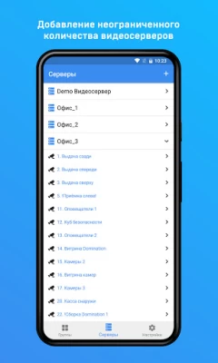 - Подключение неограниченное количество видеосерверов.