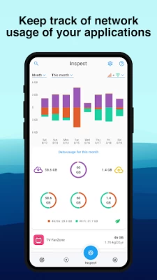 • Keep track of your current & past network data usage on your device. Detailed usage statistics are broken down per application, connection type (cellular vs Wi-Fi), and traffic type (upload vs download).