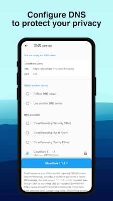 • Preserve your privacy with secure DNS servers by using the encrypted protocols DoQ (DNS over QUIC), DoH3 (DNS over HTTP/3), DoH (DNS over HTTPS) or DoT (DNS over TLS).