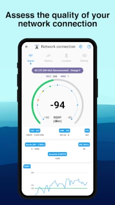 • Measure the quality of your network (cellular and Wi-Fi) signal to evaluate how good are your network connections. Generally speaking, you want a stronger network signal because it results in faster connection speeds and better service quality.