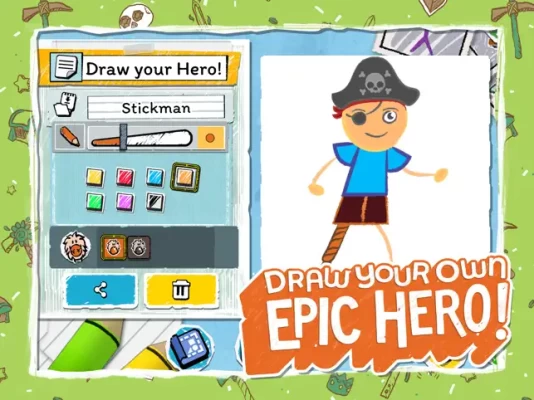 Use the new, intricate drawing tools to design the perfect Hero! Be as creative as you want—your Hero can be anything you can draw!
