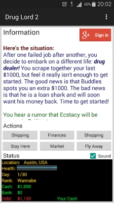 Drug Lord 2 is a classic game of trying to make it big by buying and selling drugs...YAY!