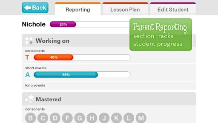PARENT REPORTING: Includes a new reporting tool so parents and teachers can see how a child is progressing