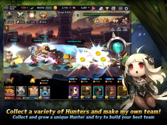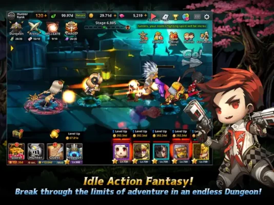 [ About the game ]It's the adventure story of the Hunters in search of a queen captured by an army of monsters!The action fantasy game of hunters growing up, acting, and breaking unlimited dungeons all by themselves.Your fingers are there just to support them!