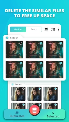 How it works : It's very easy to use. Just click on scan and the app will scan all images (even hidden files & cache files). The app will display sets of all similar and duplicate photos. There are 2 categories of sets : - Similar images : They are not exactly same but 80% similar photos. - Duplicate : They are 100% same in all prospective.