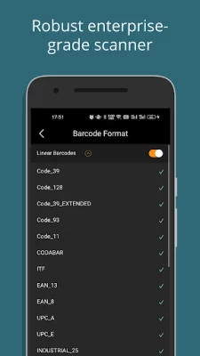✔ 1D: Code 39 (including Code 39 Extended), Code 93, Code 128, Codabar, Interleaved 2 of 5, EAN-8, EAN-13, UPC-A, UPC-E, Industrial 2 of 5