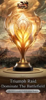 Dynasty Legends updates again! The 5th Anniversary Celebration begins! Tons of events and gifts await you! The brand new gameplay "Triumph Raid" is open! Multiplayer PVP+PVE mode brings a new experience of fighting and interaction! Come on and find out more new contents now.