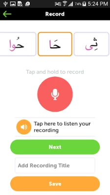 Arabic learning skills by recording your voice in Al Quran English (القران الكريم). You can compare your recorded lessons with the accurate lessons. So the best and an easy way to Learn Quran Majeed easily.