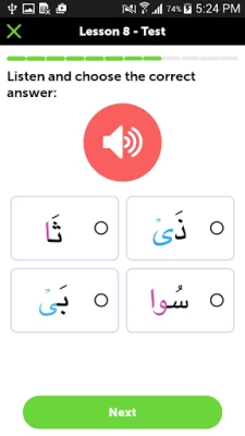 Arabic Learning by listening is the most effective way with no trouble. Here is the feature to listen first and then identify the correct answer in Quran Kareem (قران الكريم).