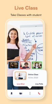 ? Live Whiteboard: Collaborate and learn together using the Live Whiteboard feature. Teachers can share their screens and illustrate concepts in real time, fostering an engaging and immersive learning environment.
