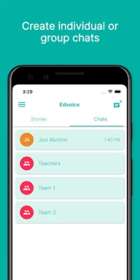 In addition to stories, where a flow of notifications is received, the app also features chats and groups. Unlike stories, these offer two-way messaging, which makes them ideal to work in groups and facilitate the information exchange with students and families.