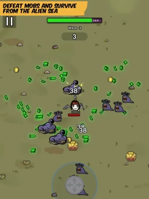 Gather materials to gain experience and get items from the store in waves of enemies.