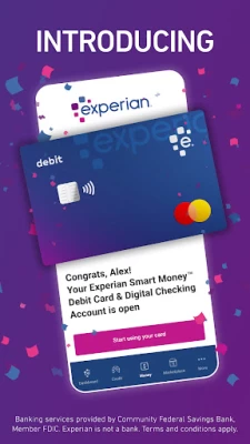 ¶The Experian Smart Money™ Debit Card is issued by Community Federal Savings Bank (CFSB), pursuant to a license from Mastercard International. Banking services provided by CFSB, Member FDIC. Experian is a Program Manager, not a bank.