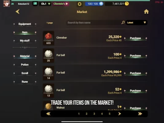 - Items can be sold to NPCs. The merchant who purchases items, Parasiel, changes the purchases every 4 hours.