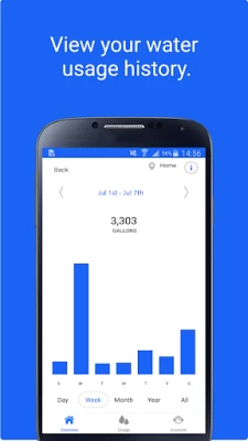 - View detailed water usage history by day, week, month, and year.