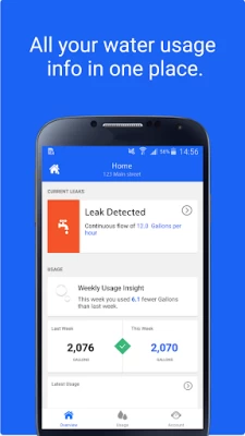 - Quickly view your recent water usage with a two week comparison.