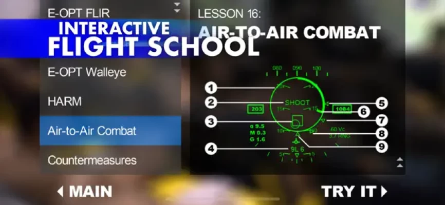 Acquire a target on the realistically simulated AN/APG-65 radar. Then launch an AIM-9 Sidewinder missile and watch it track its target with its realistically simulated guidance system.