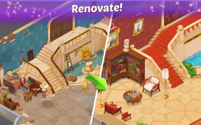 You are going to turn a run-down countryside manor into the high class family inn. Play match-3 to clear the rubble and let your imagination flow as you start the building restoration and bring it back to its former glory. Enjoy your new hotel life!