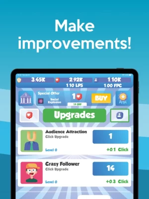 You can increase your follower count with upgrade options, optimize your like-gaining speed, and enhance your advantages in the game.