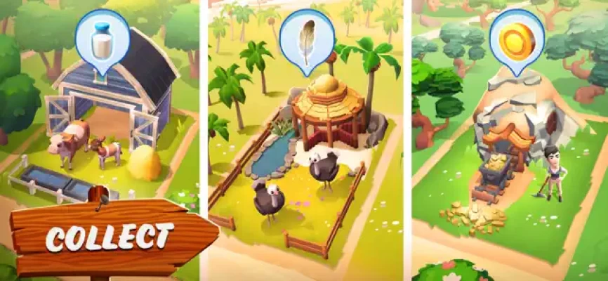 Start from scratch, expand and upgrade your tropical village. Plant, grow, and harvest your favorite exotic fruits and vegetables. Send your workers around the island to explore and gather resources to craft goods!