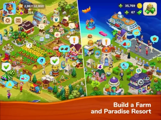 Explore and develop new amazing territories, increase your farm. Build different beautiful buildings and factories, creating an entire infrastructure.