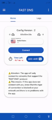 ⚠️Attention: The app will only connect to networks that support the “FAST DNS” protocol. ⚠️This means: If this app doesn't connect with you, know that this type of connection is blocked on your network and there's no problems with the app.