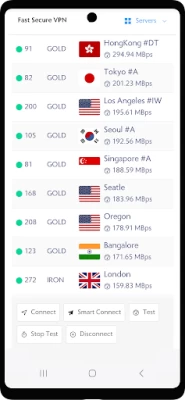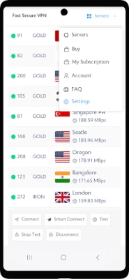 You can easily decide which is the best and fastest VPN server for you by using our speed test tool. Just tap the test button and all servers will be tested in queue. You can also sort all the servers by download speed, stability, country/area or PING latency, etc.