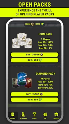 Experience the thrill of opening diverse player packs - Premium Icon, Premium Diamond, Gold, Silver, and Bronze. Strengthen your squad with top players and take control on the field.