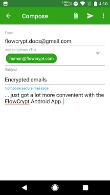 - No understanding of cryptography needed. Don’t know what a public key is? You don’t need to know to secure your email with FlowCrypt. Power users with an existing public key are also served.