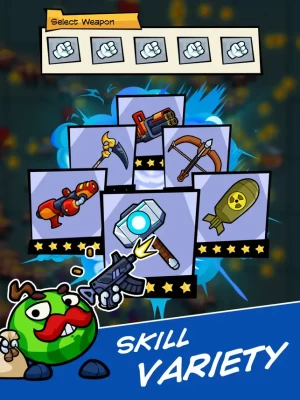 Become a hero of chivalry, survive and take the responsibility of surviving to achieve a heroic end. You will play as food characters and survive through the battle by killing all vermin. Red pepper - Charlie survivor, Pumpkin - Jack survivor, Banana - Bart survivor, Brotato Bob survivor, ... Each character has different powers and strengths, choose a favorite character for yourself and destroy zombie enemies with powerful weapons in your survival fight.