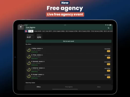 Free Agency Day: Engage in interactive activities by submitting offers to players. Players take the time to analyze offers from other teams and make decisions that suit their interests. Negotiate and sign the best talents!