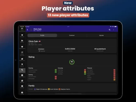 Families: Get to know your players on a personal level! Players have family information, allowing you to discover their parents, uncles, cousins, and even brothers across multiple generations. Some players might even be twins or have children of their own!