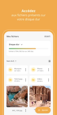 Autre Freebox : branchez votre disque dur personnel et retrouvez vos fichiers, accessibles depuis votre smartphone.
