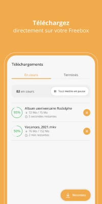 Lancez un téléchargement via un lien url, un fichier torrent ou un lien magnet depuis n'importe où, et laissez votre Freebox faire le travail.