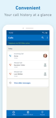 The FRITZ!App Fon is the ideal telephony extension for your FRITZ!Box. Be it a handset for the new roommate in your shared apartment, an additional telephone for working from home, or the convenience of the smartphone that's always handy: with the FRITZ!App Fon you always have a practical solution in no time at all. It is easy to use the FRITZ!App Fon on multiple smartphones.