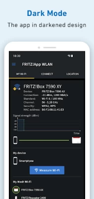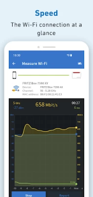 With FRITZ!App WLAN you can keep an eye on your wireless network at all times. Use the FRITZ!App WLAN for an easy connection from your Android smartphone or tablet to the wireless LAN of your FRITZ!Box or any other WLAN router. The FRITZ!App WLAN also provides you with useful details about the existing wireless connection. A graphic diagram presented in the FRITZ!App WLAN offers you additional transparency about the channel assignments of the various devices in your wireless LAN environment.