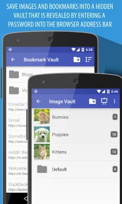 Download images from the web and save bookmarks into a hidden, password protected vault