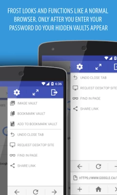 Frost is the best private tabbed web browser for Android, with a hidden, password protected image and bookmark vault as well as extensive privacy features.