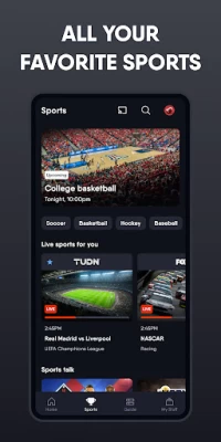 Watch NFL, MLB, NBA, NHL, NASCAR, NCAA college football, NCAA college basketball, MLS soccer, FIFA World Cup qualifiers, UEFA Champions League, English Premier League, LaLiga, Bundesliga & more, all live. Plus, stream acclaimed TV series, live news and award-winning movies and enjoy Cloud DVR and dedicated sports navigation to watch what you want, when you want.