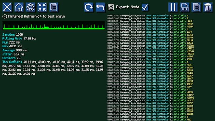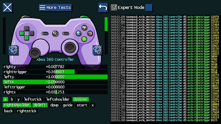 ?️ Graphical feedback for buttons, axes, touches & sensors ? Includes a mini twin-stick shooter game ? Haptic, force-feedback & vibration test ? LED test ?️ Mouse & other pointing devices test ⌨️ Keyboard test ? Touch screen & touch pad test ? Sensor test ? Detailed event log ? Record input data to CSV file