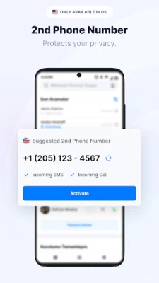 Second phone number service allows you to have a second mobile number that is not associated with your main number without the need for an additional SIM card. Choose your preferred number and start using it right away.